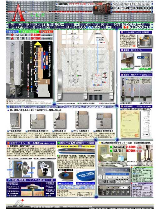 「特許」 第3490076号 二軸可変プレート段差調整構造 「特許」 第4285703号 衝撃力吸収緩和構造 金物本体・ステンレス・カバー |